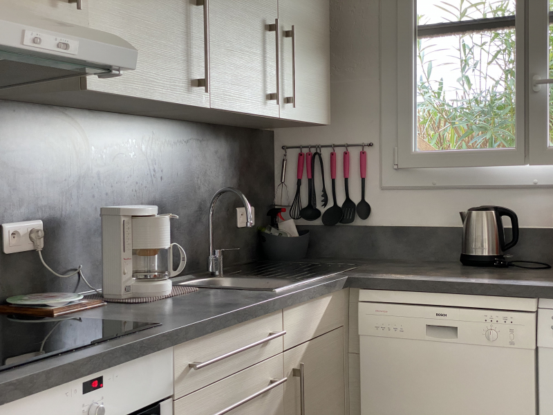 La mini-villa est située en rez-de-jardin et son séjour ouvre sur une grande terrasse ombragée prolongée par un parc qui vous mène vers la piscine et le terrain de tennis.